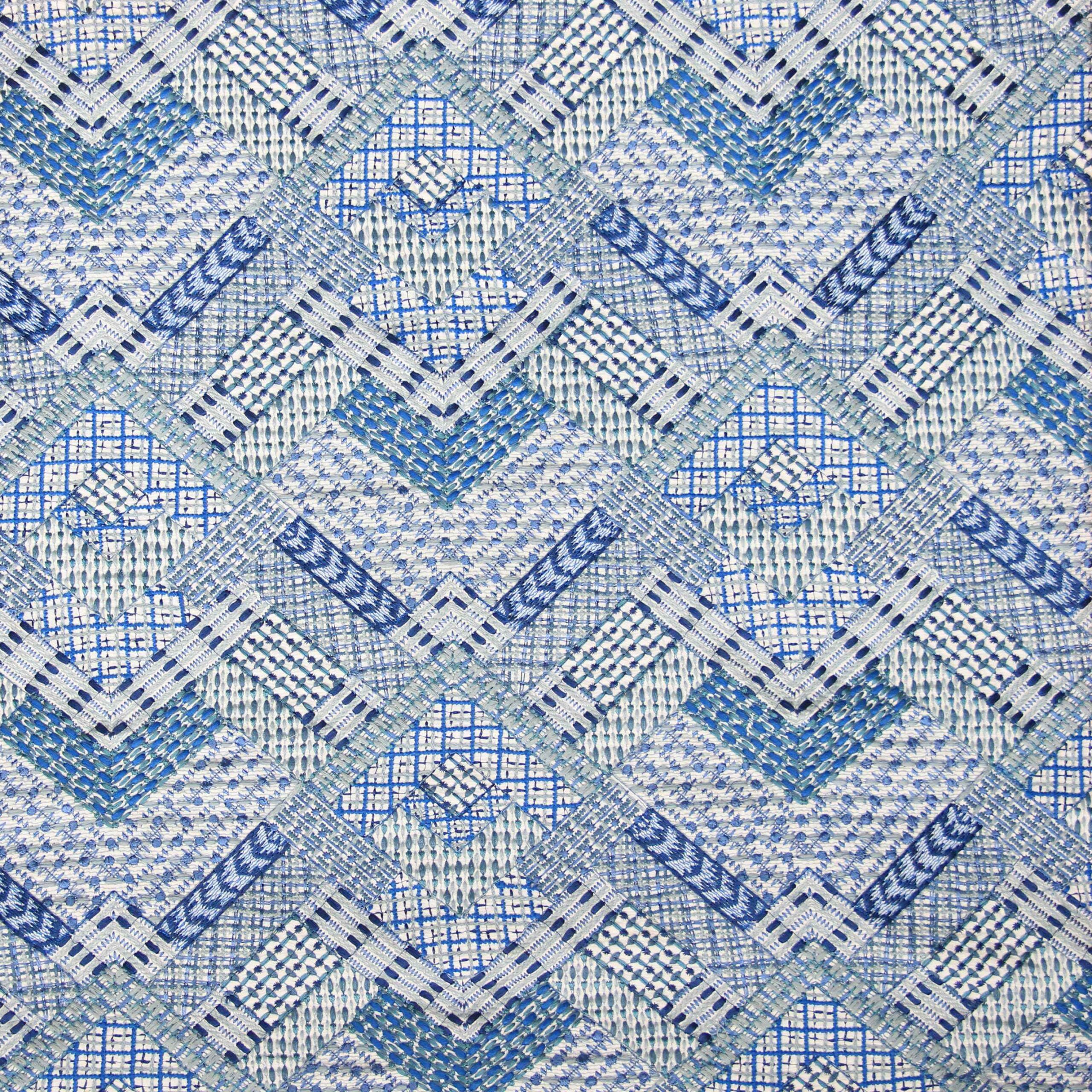 ALEXANDRIA redefines decorative textiles through intricate embroidery on a cotton base. Its layered, broken chevron and geometric motifs evoke architectural artistry, blending texture and dimension in every thread. Perfect for cushions and drapery, this fabric adds a touch of opulence and global sophistication to refined interiors.